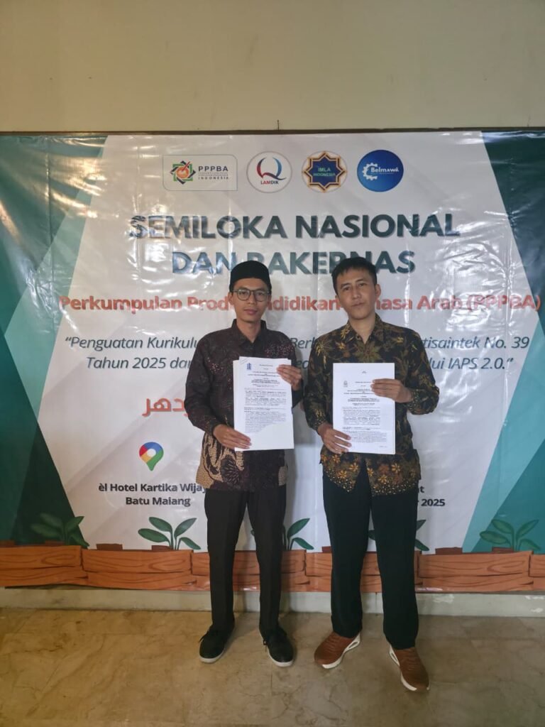 Malang, 5–7 November 2025 — Program Studi Pendidikan Bahasa Arab (PBA) dari berbagai perguruan tinggi di Indonesia mengikuti kegiatan Semiloka dan Rapat Kerja Nasional (Rakernas) bertema “Penguatan Kurikulum Prodi PBA Berbasis Permendiktisaintek No. 39 Tahun 2025 dan Penyiapan Akreditasi Unggul melalui IAPS 2.0 ke 3.0.” Kegiatan ini diselenggarakan di éL Hotel Kartika Wijaya, Batu, Jawa Timur, pada 5–7 November 2025, dan dihadiri oleh para kaprodi, dosen, serta pakar pendidikan Bahasa Arab dari berbagai universitas di bawah naungan Kemdikbudristek dan Kementerian Agama.
