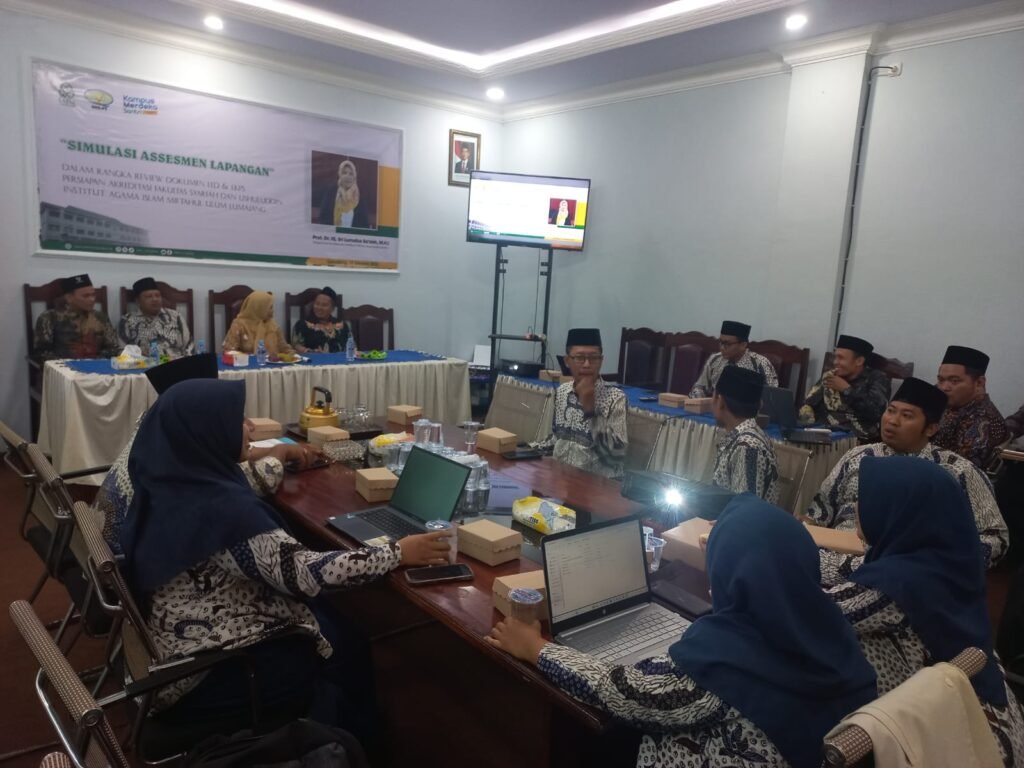 Kegiatan dibuka oleh Wakil Rektor I bidang akademik dan kelembagaan, Farhanuddin Sholeh, M.Pd.I dalam sambutannya menyampaikan bahwa simulasi ini merupakan bagian dari komitmen jurusan dalam menyajikan dokumen akreditasi yang kredibel dan akuntabel. “Kami ingin memastikan bahwa tim memiliki kesiapan maksimal, baik dari sisi substansi maupun teknis, sebelum menghadapi tim asesor BAN-PT yang sesungguhnya, sebelumnya kita juga telah melaksanakan Assesmen Lapangan secara berurutan di Fakultas Tarbiyah dan sekarang giliran Fakultas Syariah dan Ushuluddin di Prodi HKI dan IAT.” ujarnya.
