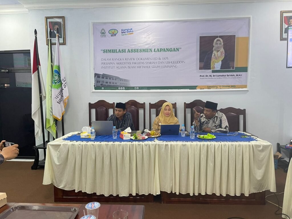 Lumajang- Dalam rangka memantapkan persiapan menghadapi asesmen lapangan oleh BAN-PT , Jurusan Hukum Keluarga Islam (HKI) dan Jurusan Ilmu Al-Qur’an dan Tafsir di Fakultas Syariah dan Ushuluddin IAI Miftahul Ulum Lumajang menggelar simulasi akreditasi pada Minggu, 12 Oktober 2025. Bertempat di ruang meeting IAIM Lumajang.